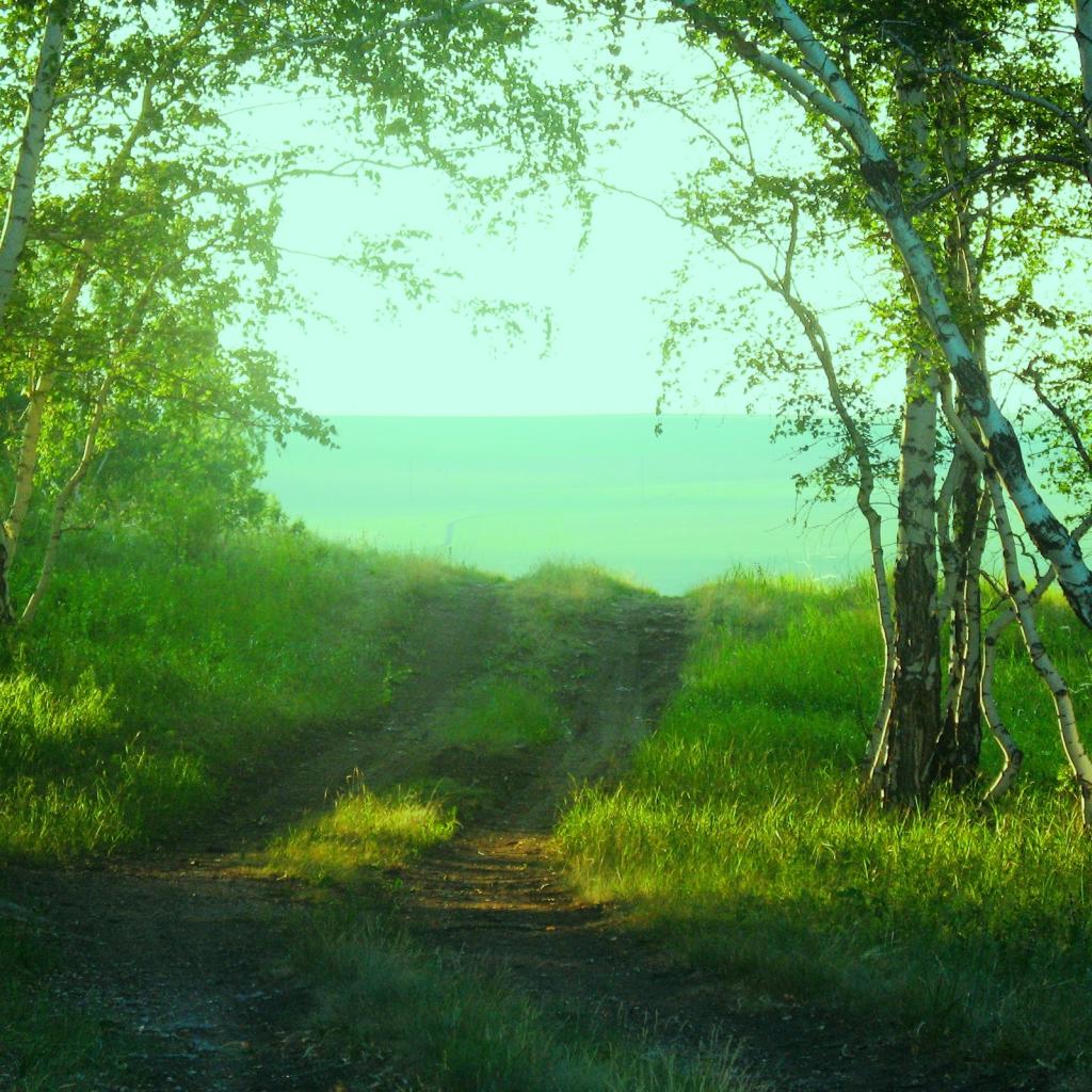 Wallpaper Road among birches