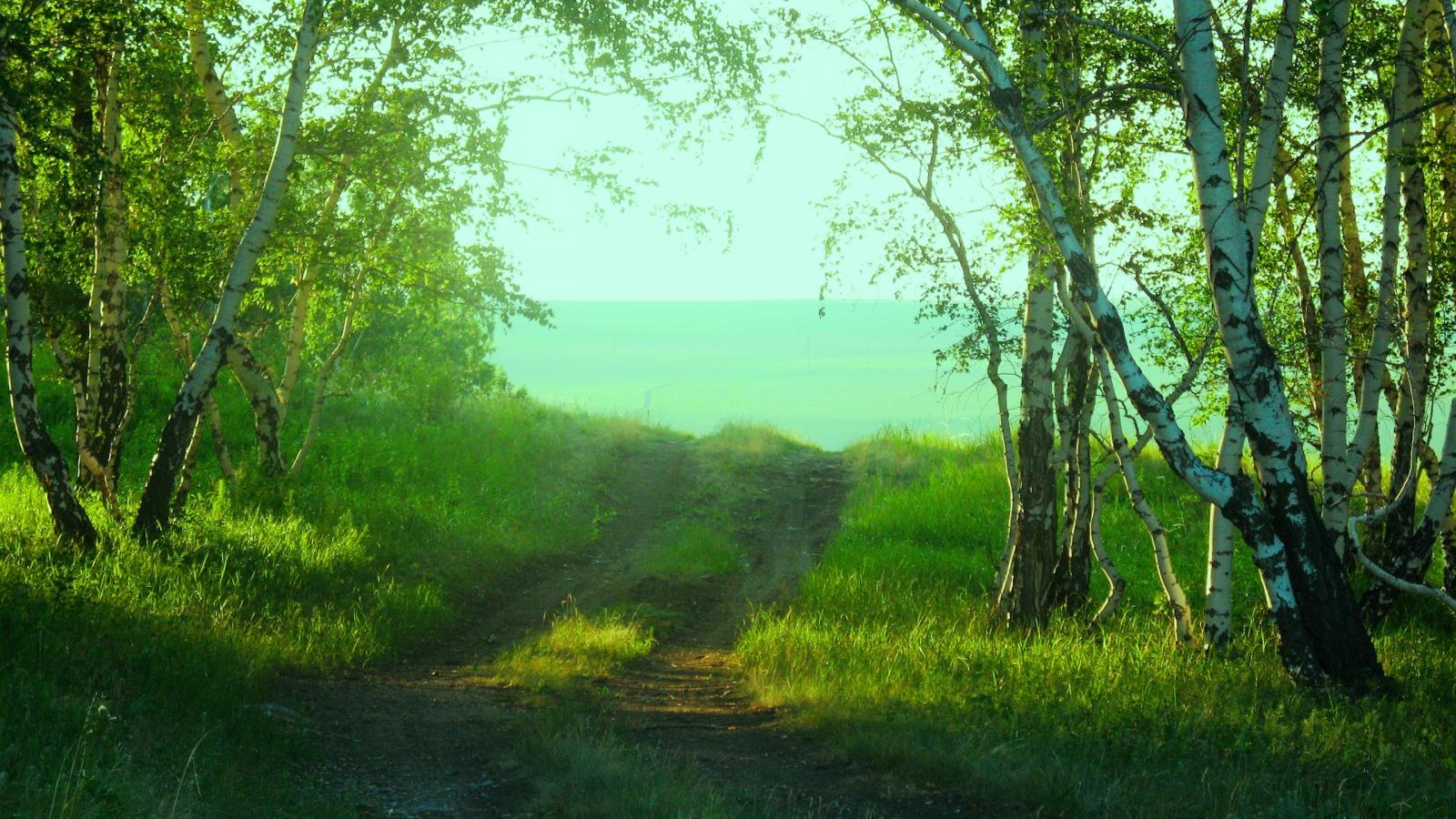 Wallpaper Road among birches