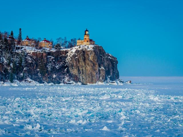 Wallpaper Lighthouse over the frozen sea