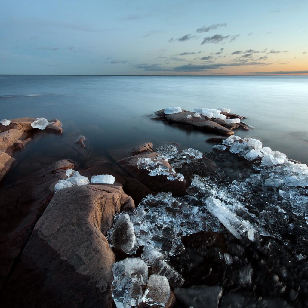 Wallpaper Chunks of ice on the rocks near the shore