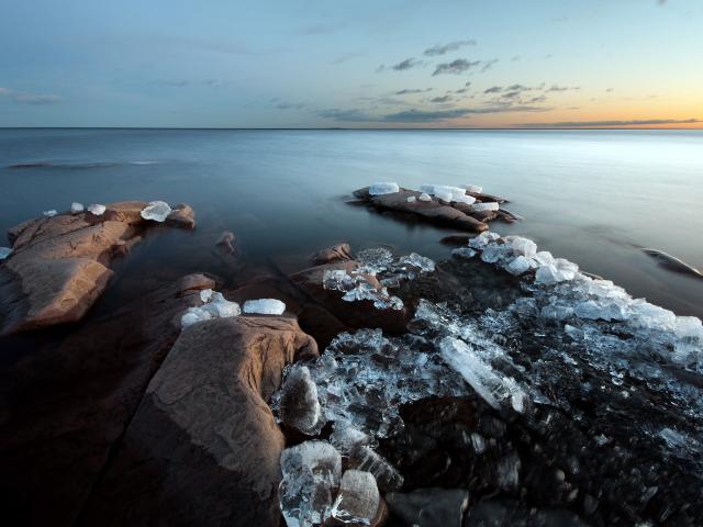 Wallpaper Chunks of ice on the rocks near the shore