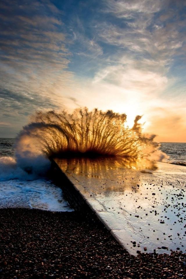 Wallpaper Wave beats on the pier
