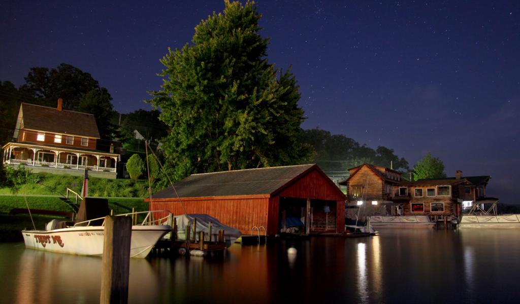 Wallpaper The boat pier at night