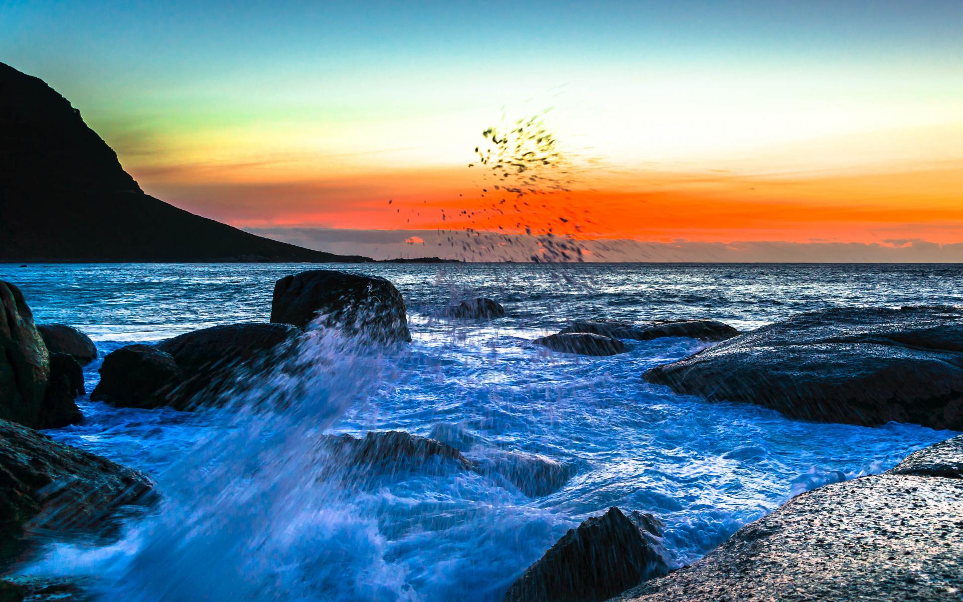 Wallpaper Sunset over the sea bay