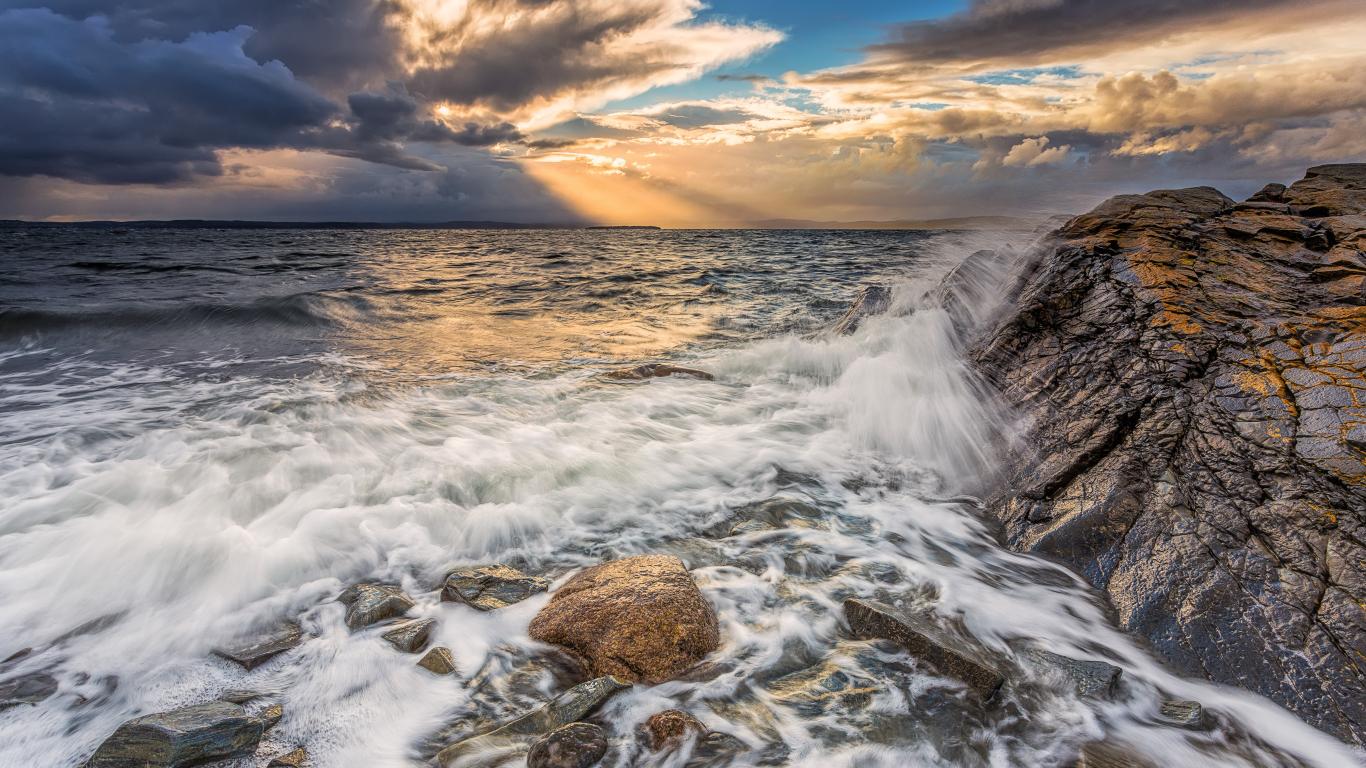 Wallpaper The waves beat against the rocks