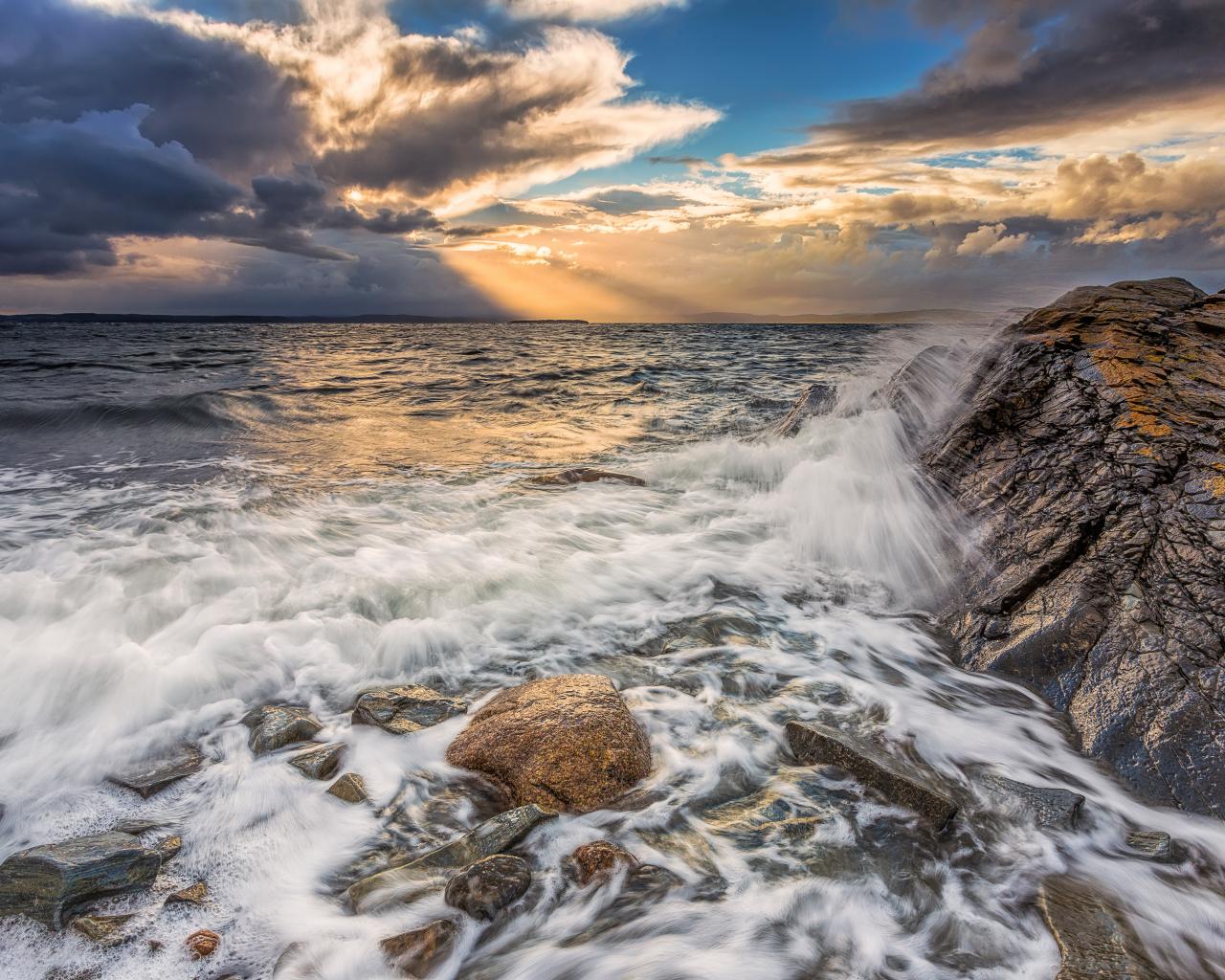 Wallpaper The waves beat against the rocks