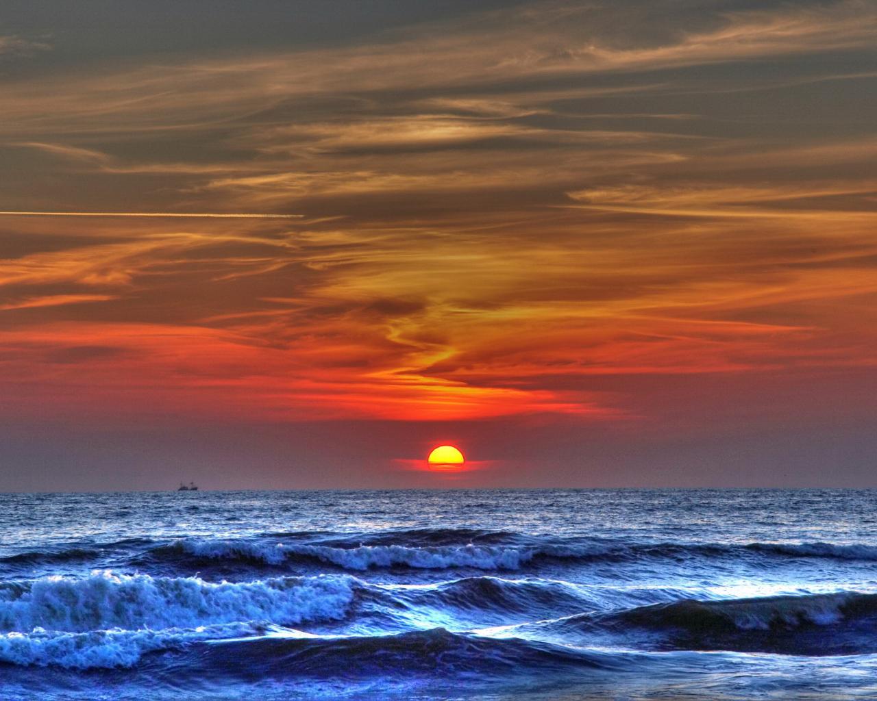 Wallpaper Blue sea and red sunset