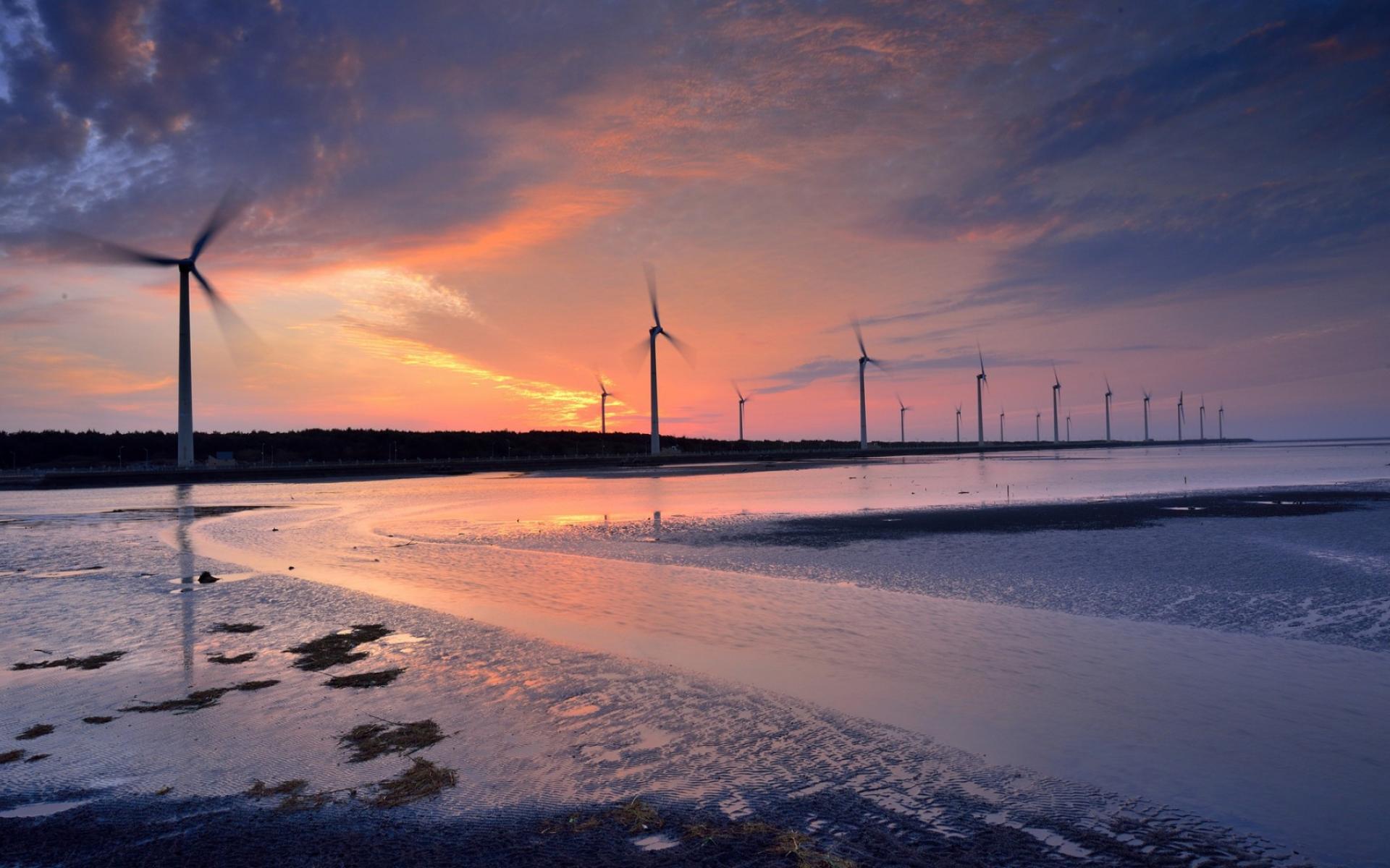 Wallpaper Windmills on the coast
