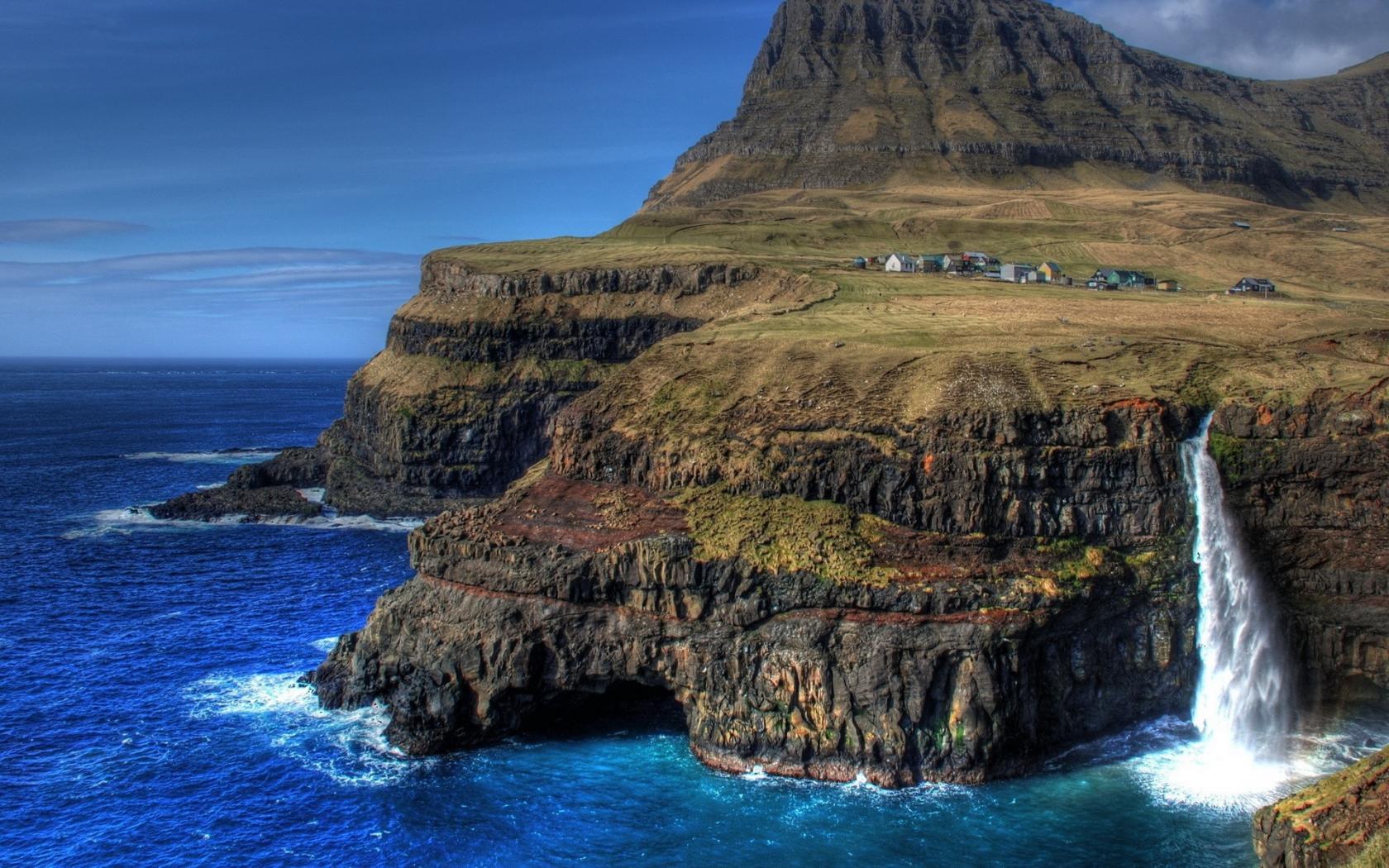 Wallpaper The village is on a steep Bank of the sea