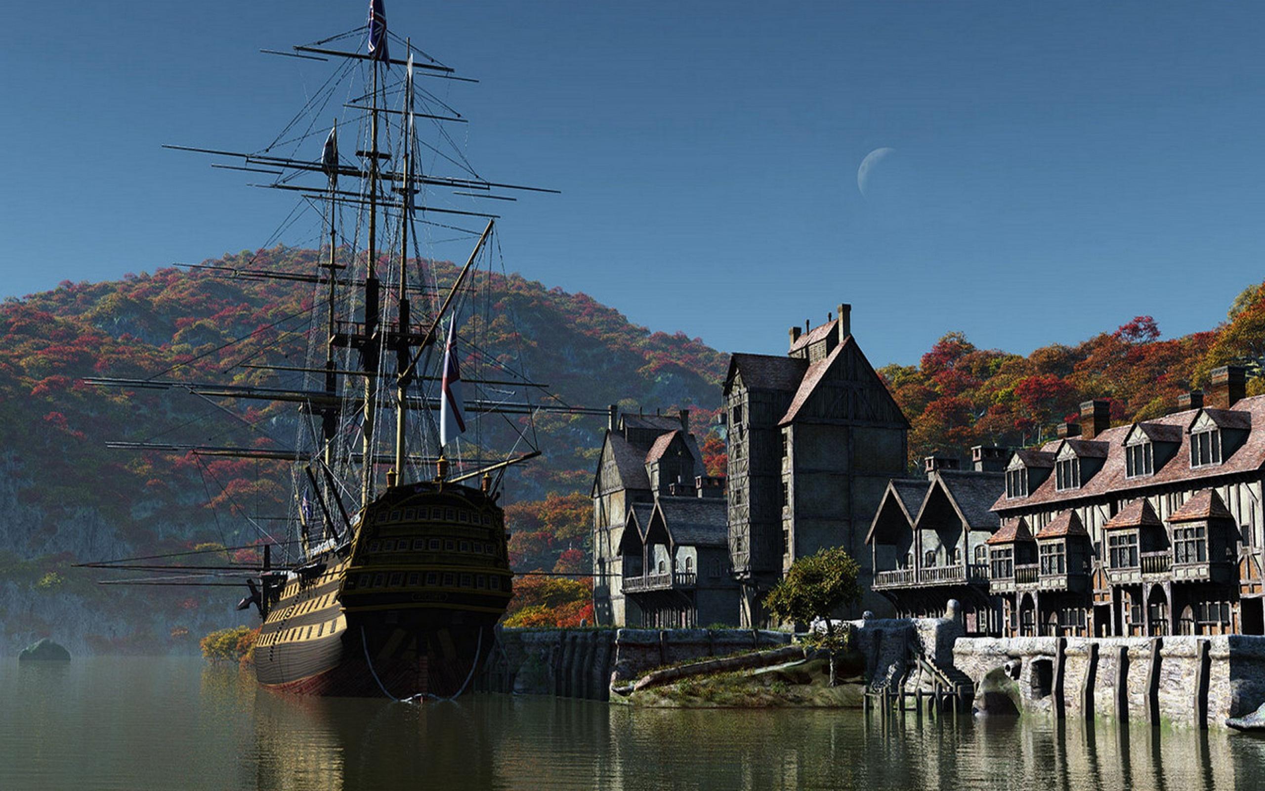 Wallpaper Sailing ship on the quay