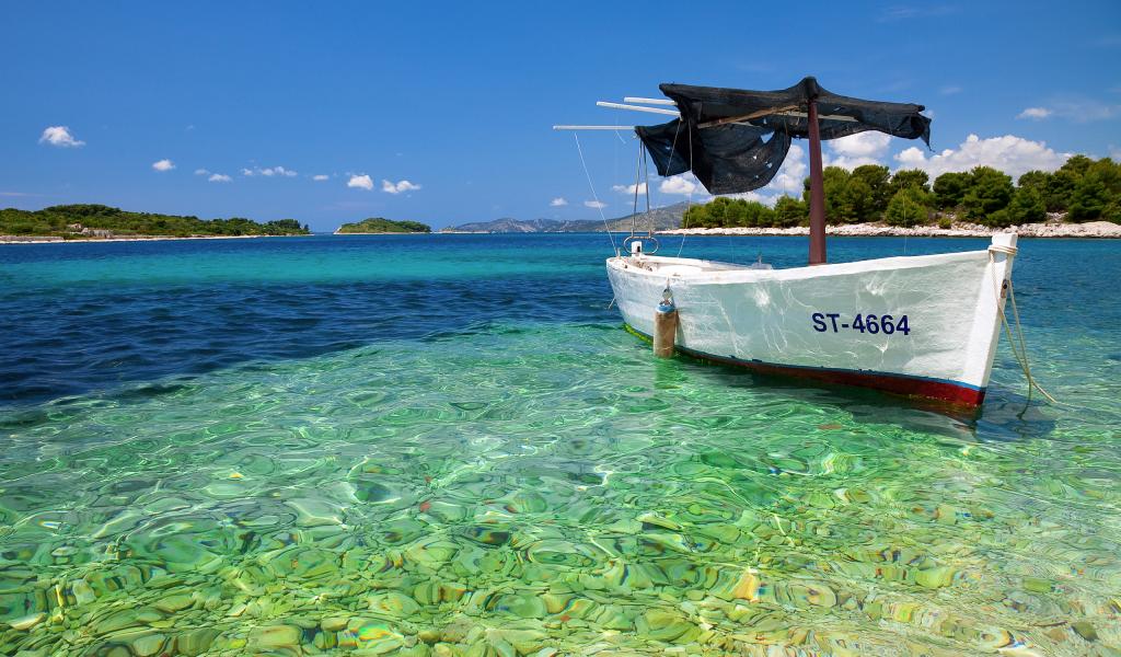 Wallpaper The boat in transparent water