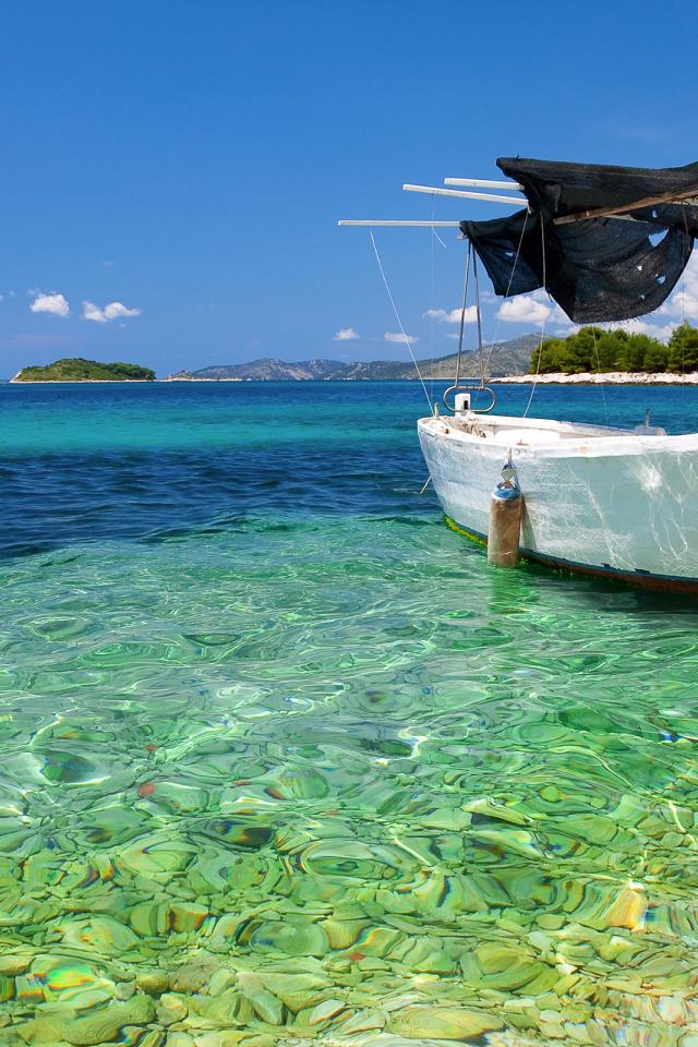 Wallpaper The boat in transparent water