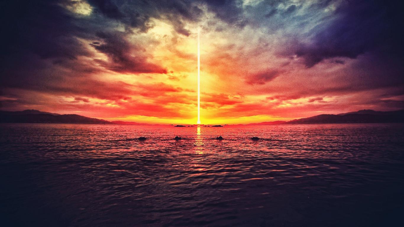 Wallpaper The light beam from the water
