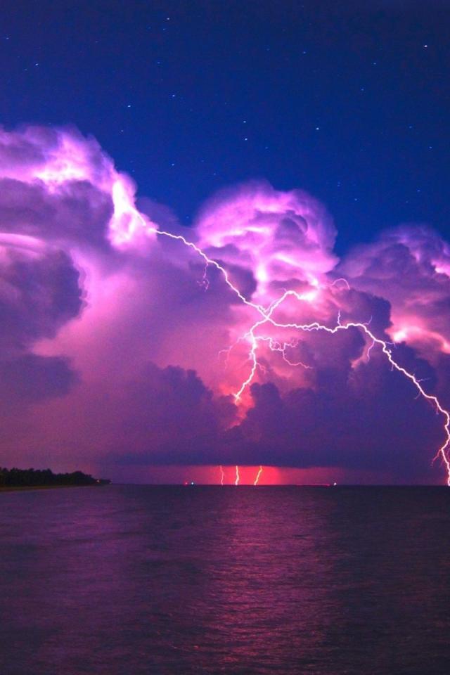 Wallpaper Thunder lightning over the sea