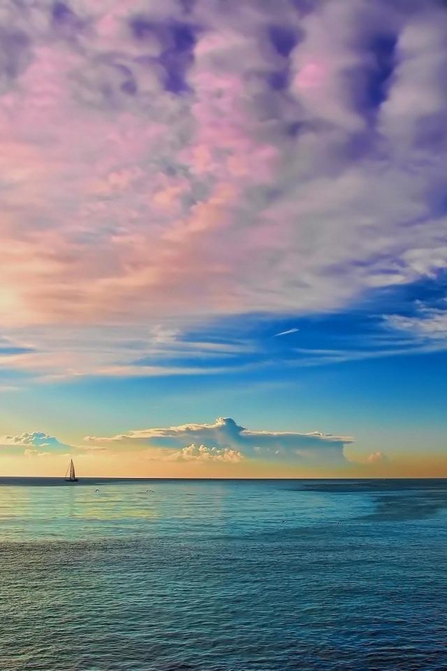 Wallpaper Delicate pink clouds over the bay