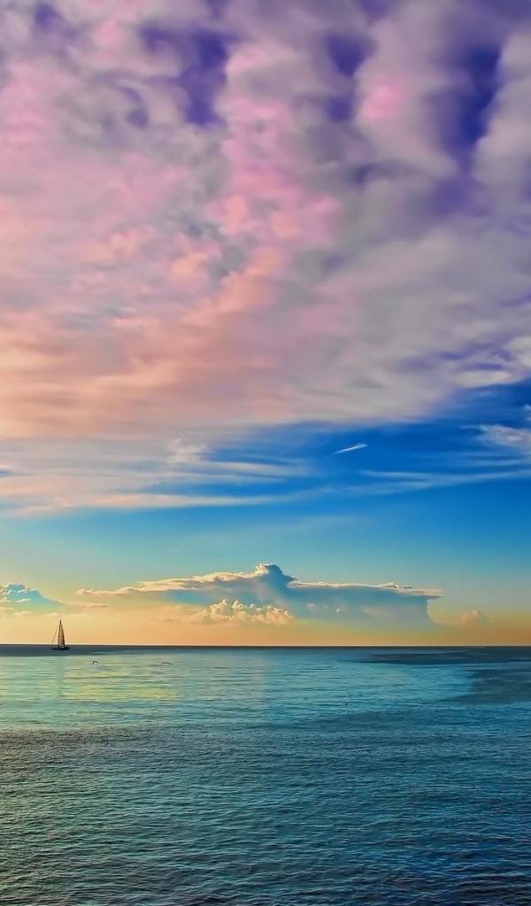 Wallpaper Delicate pink clouds over the bay