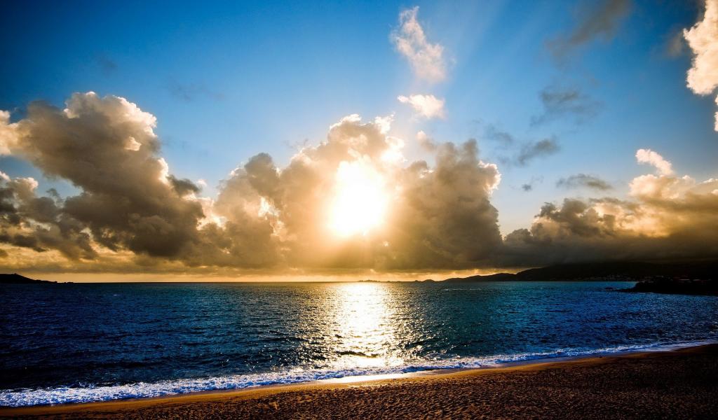 Wallpaper Sun in fluffy clouds