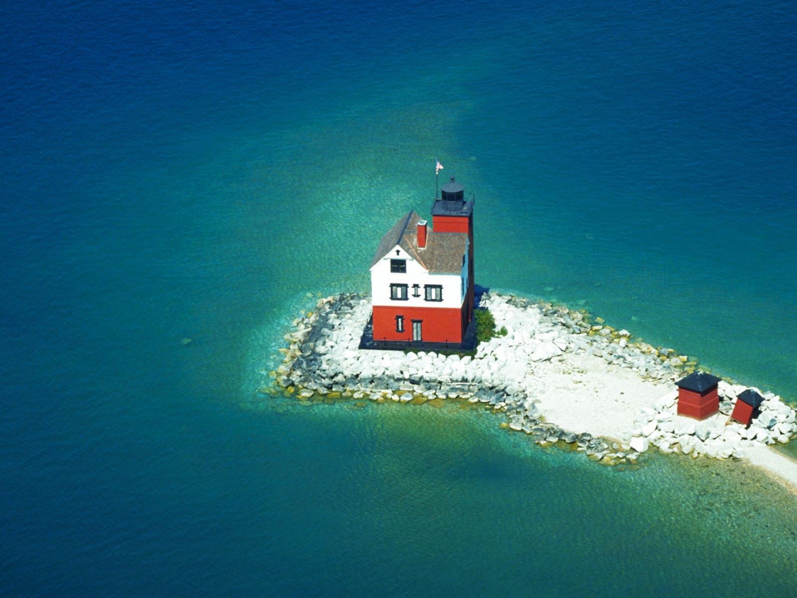 Wallpaper Lighthouse on the rocky islet