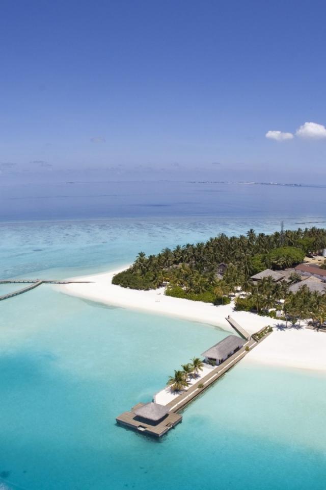 Wallpaper Island with white beach in the middle of the ocean