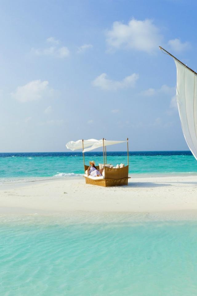 Wallpaper Sailboat on the sandy island