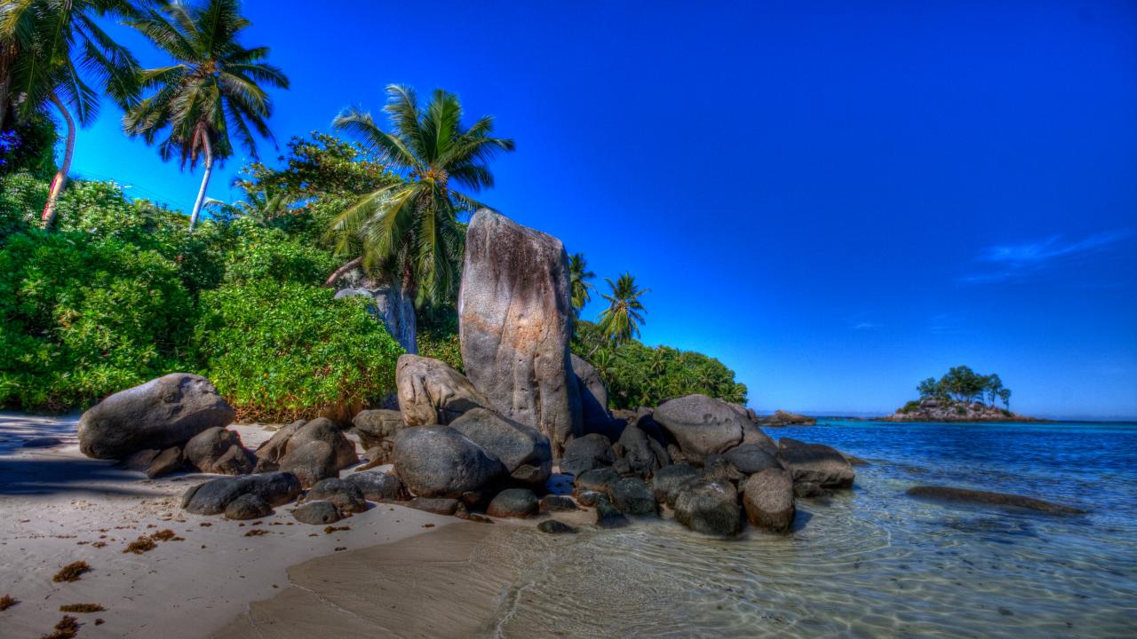 Wallpaper Wooden boat in a paradise island in Polynesia
