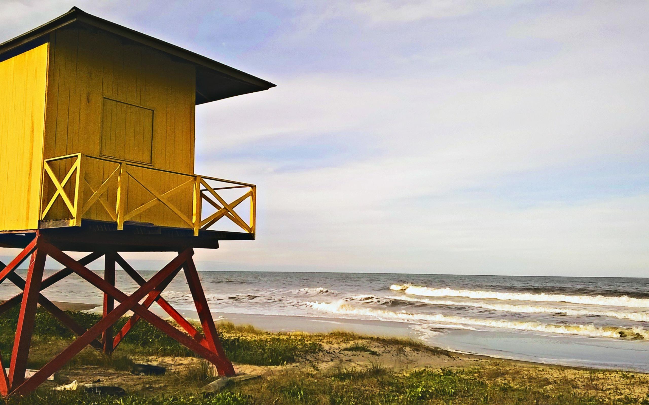 Wallpaper Model in a yellow dress among the flowers on the beach