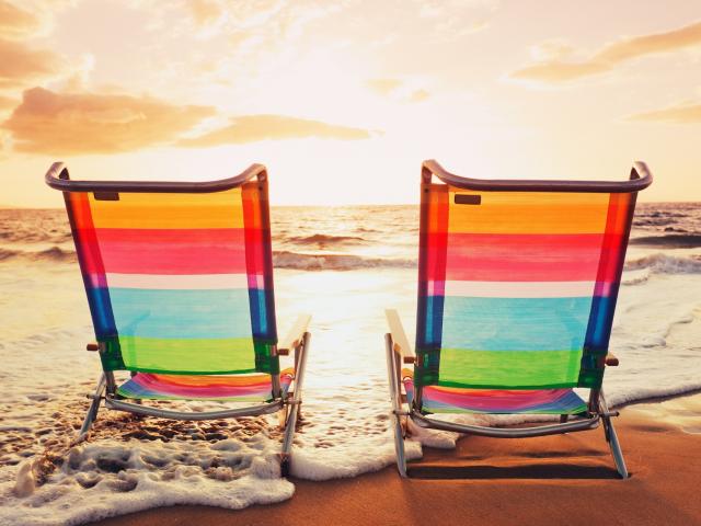 Wallpaper Deck chairs made of transparent plastic on the beach