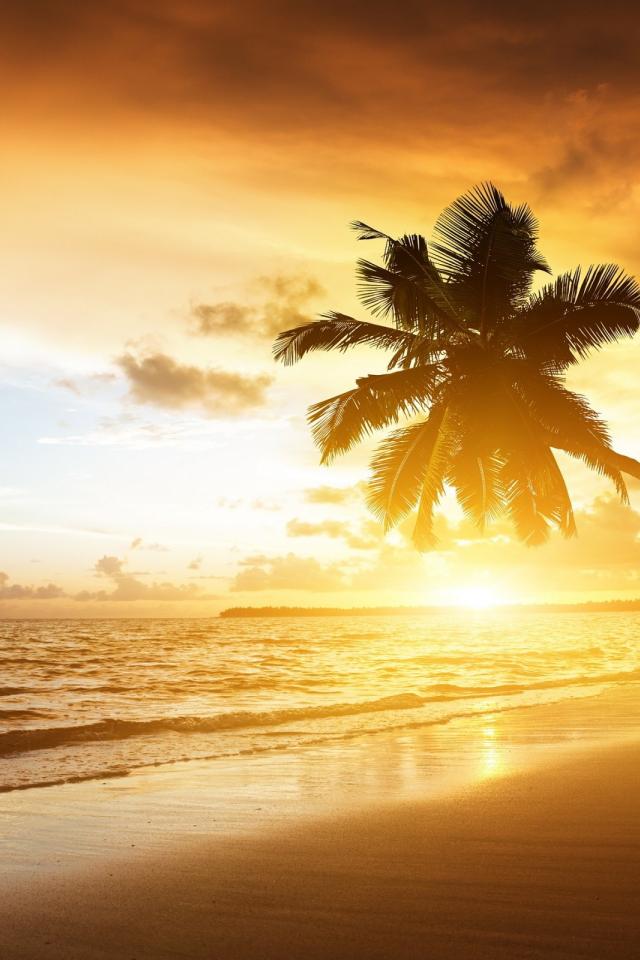 Wallpaper Palm trees on the beach on a hot evening