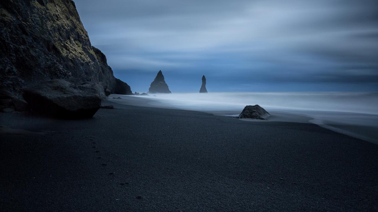Wallpaper Traces of the animal on the black sand beach