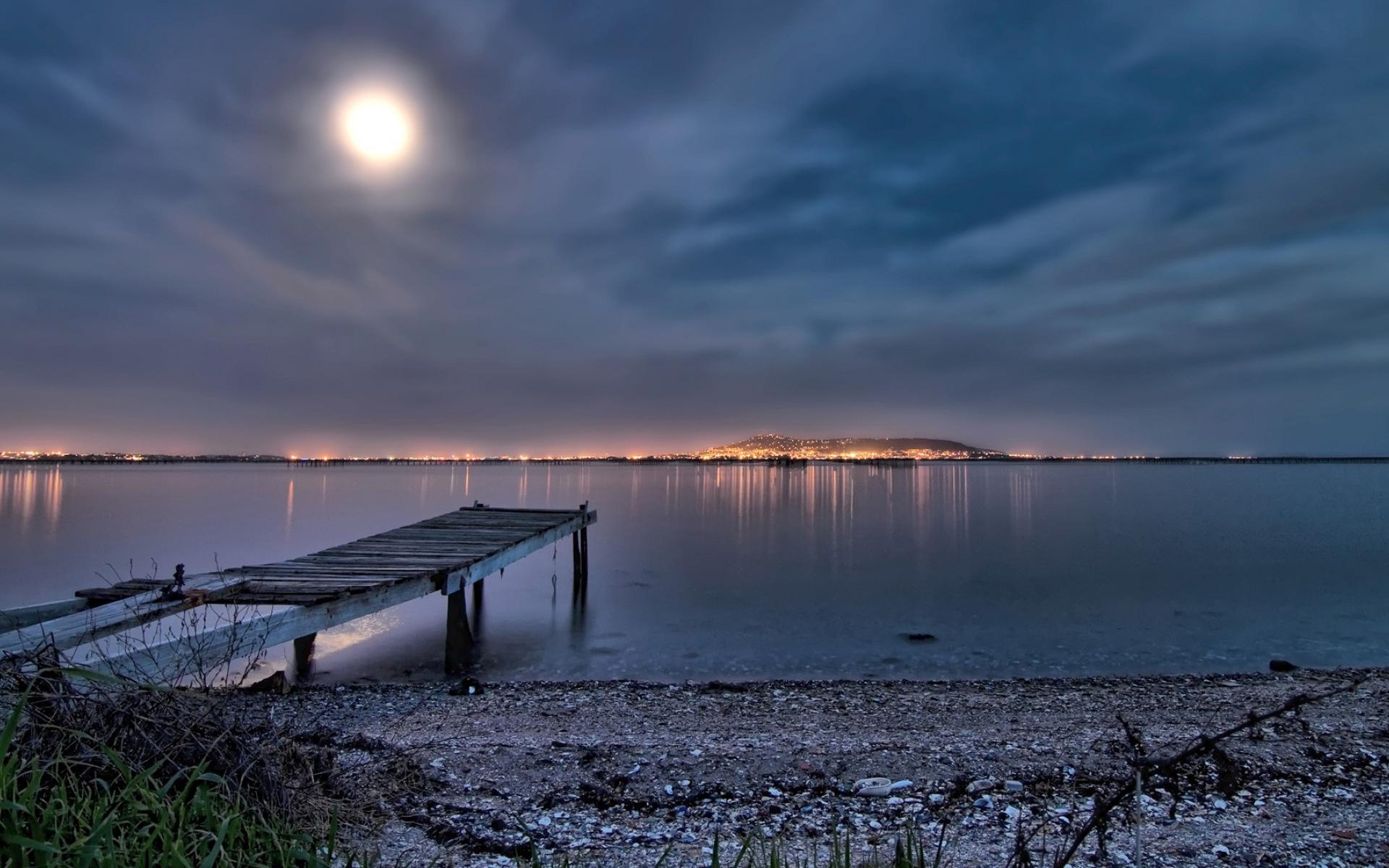 Wallpaper Moon over the beach at night with city views