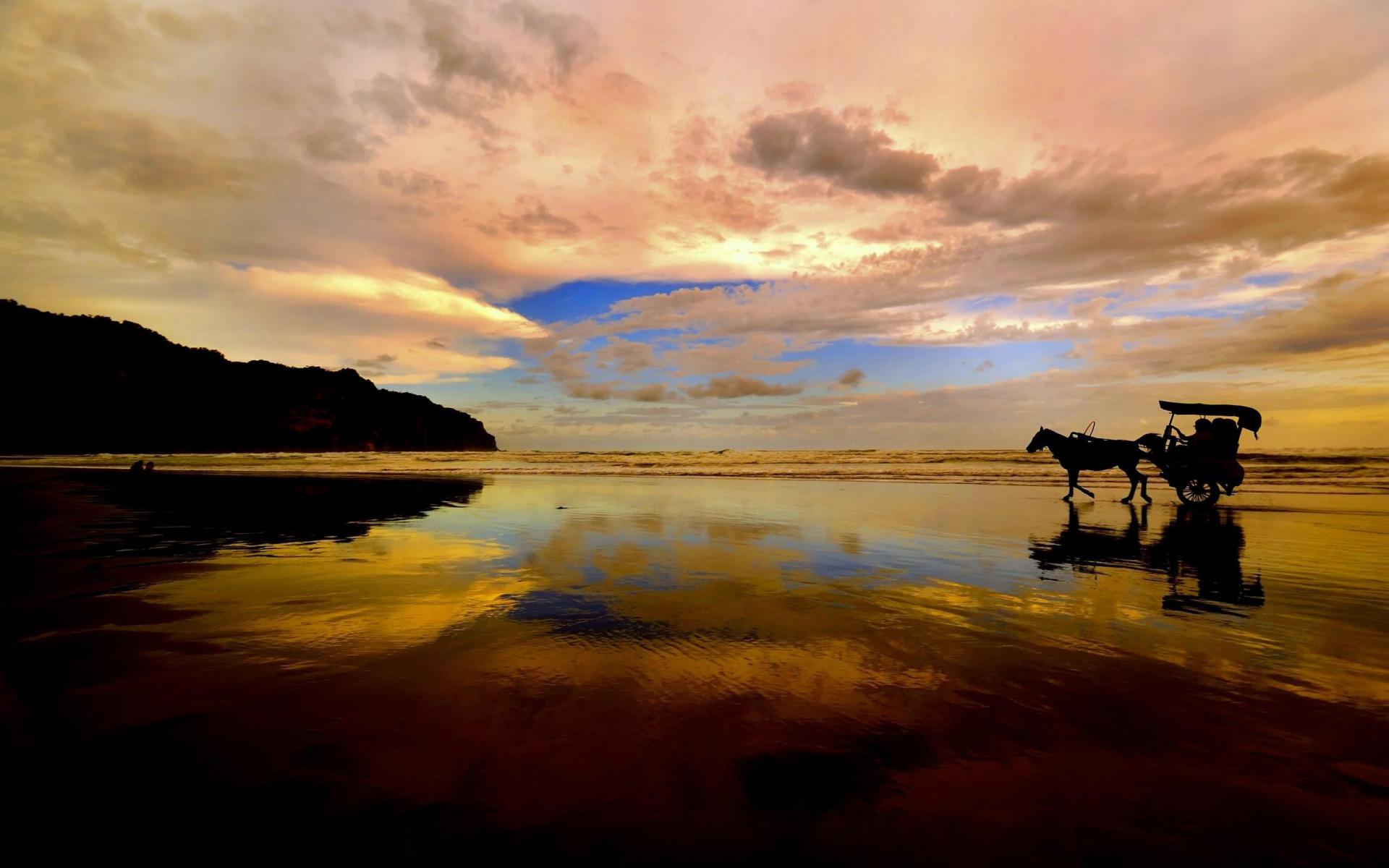 Wallpaper Horseback riding along the beach