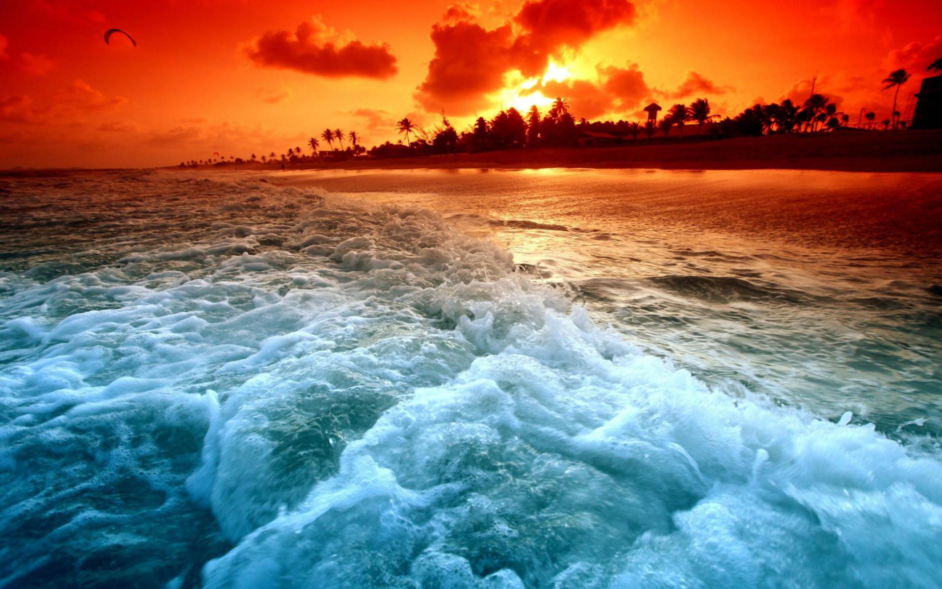 Wallpaper Beach at sunset in tropics