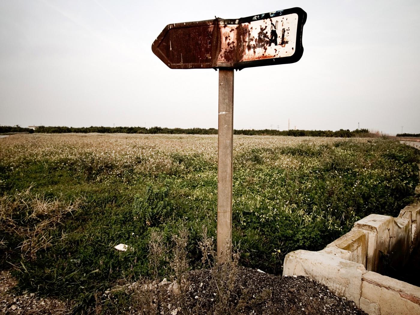 Wallpaper Rusty direction sign at the field
