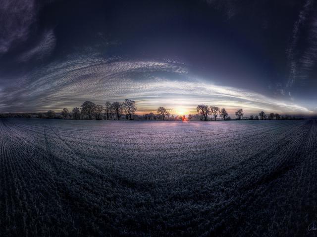Wallpaper Winter dawn, fish-eye lens