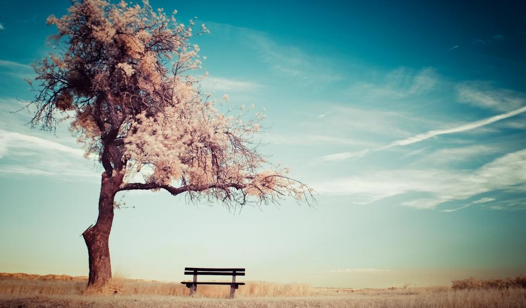 Wallpaper Bench midst of a blossoming tree