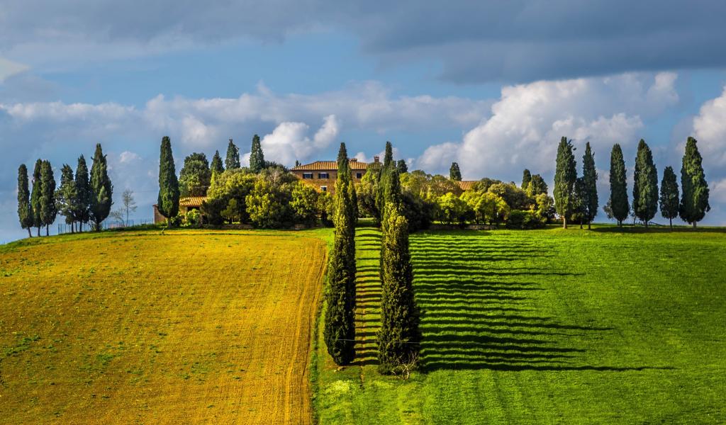 Wallpaper Rows of poplar trees between the fields