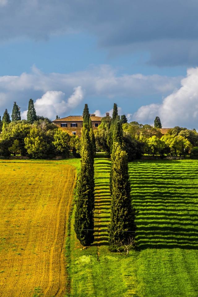 Wallpaper Rows of poplar trees between the fields