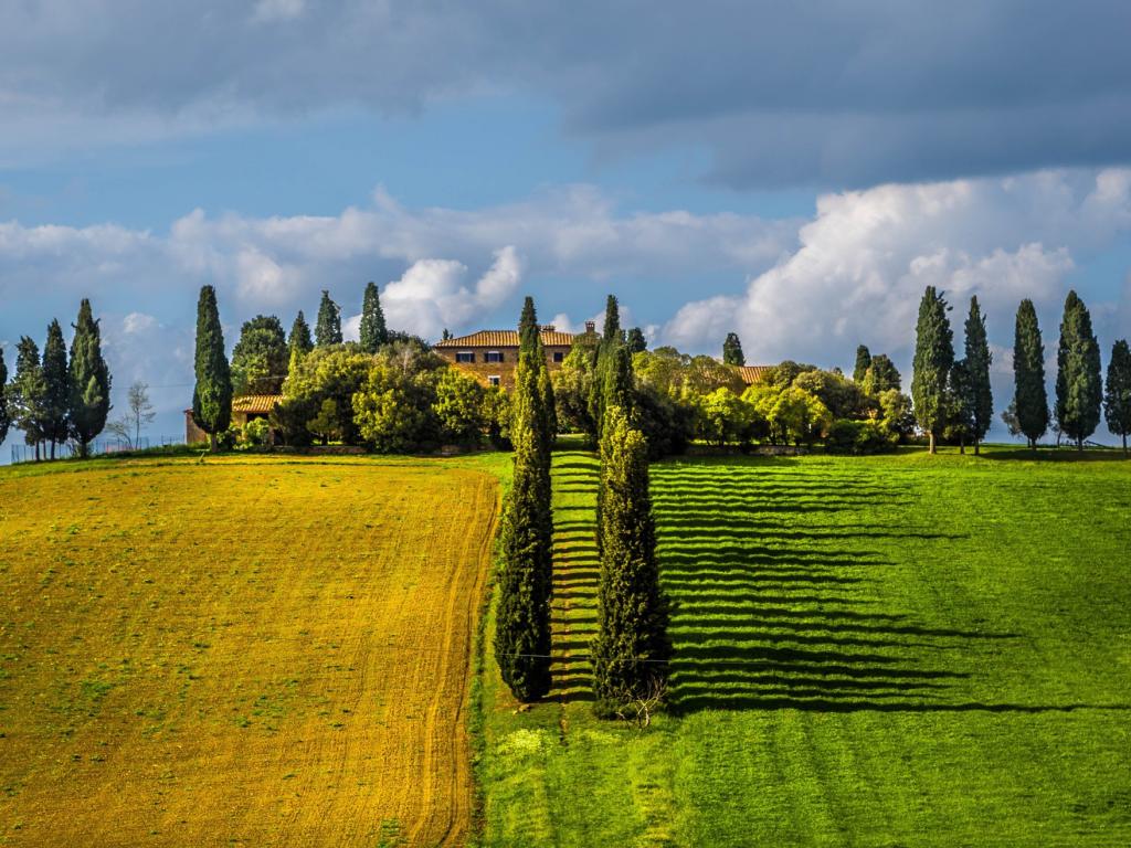 Wallpaper Rows of poplar trees between the fields