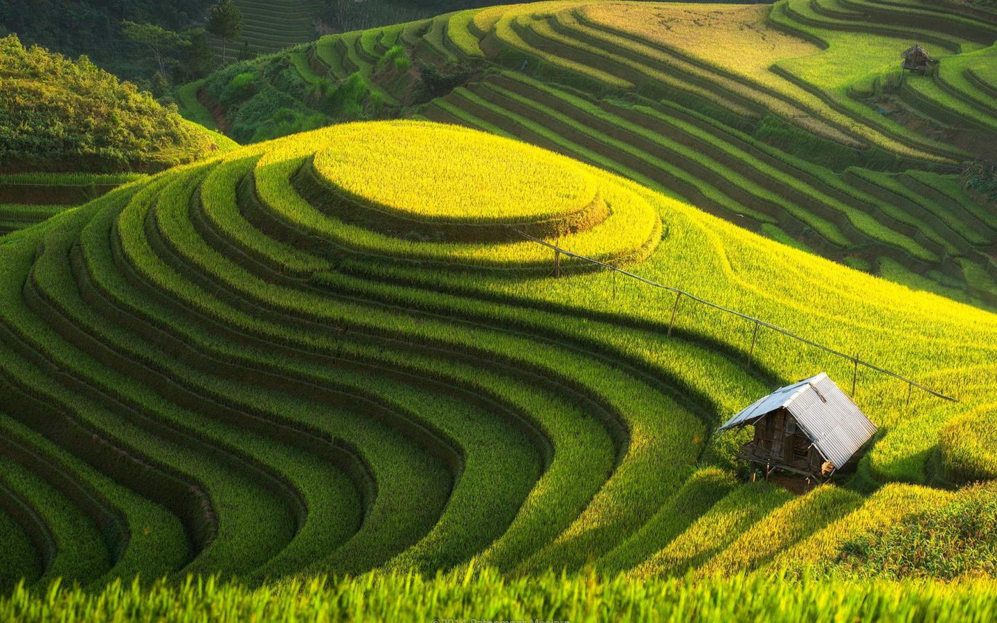 Wallpaper Cultivated fields on the hill