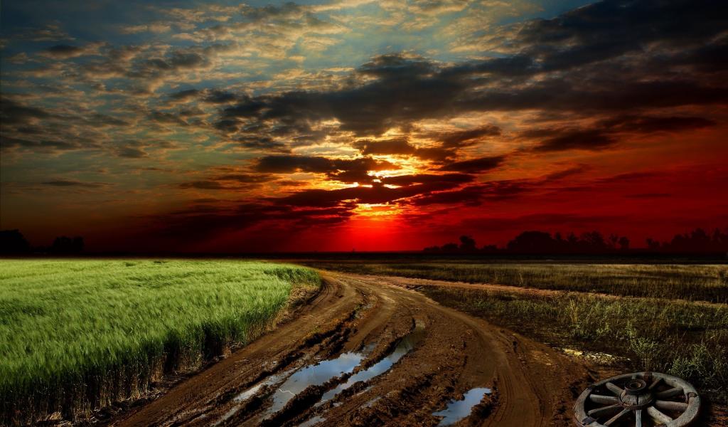 Wallpaper Fuzzy dirt road at the edge of the field