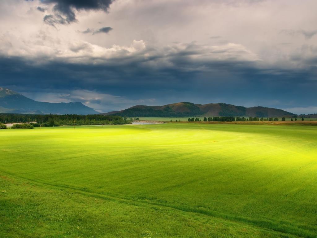 Wallpaper Flying over the green plain