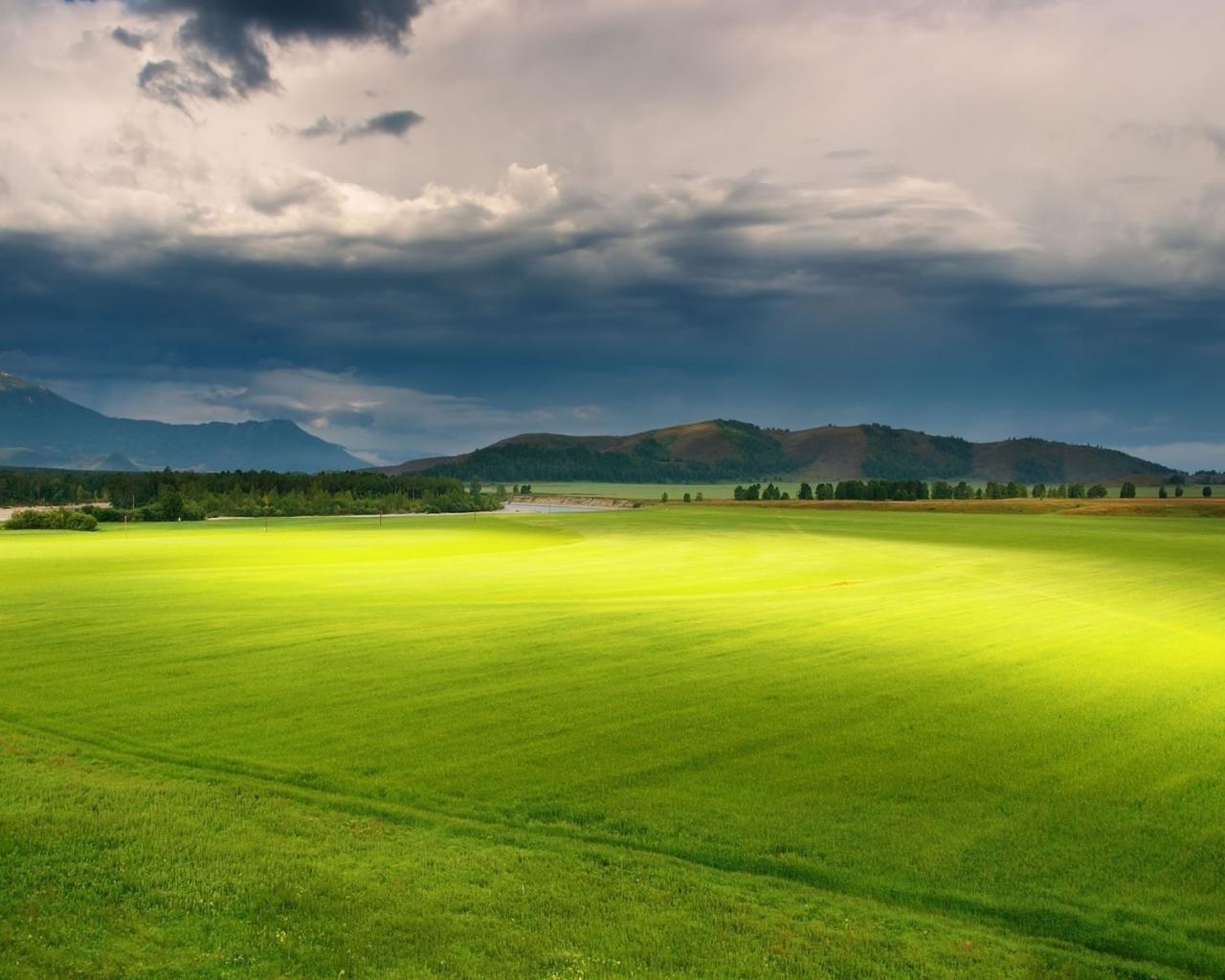Wallpaper Flying over the green plain
