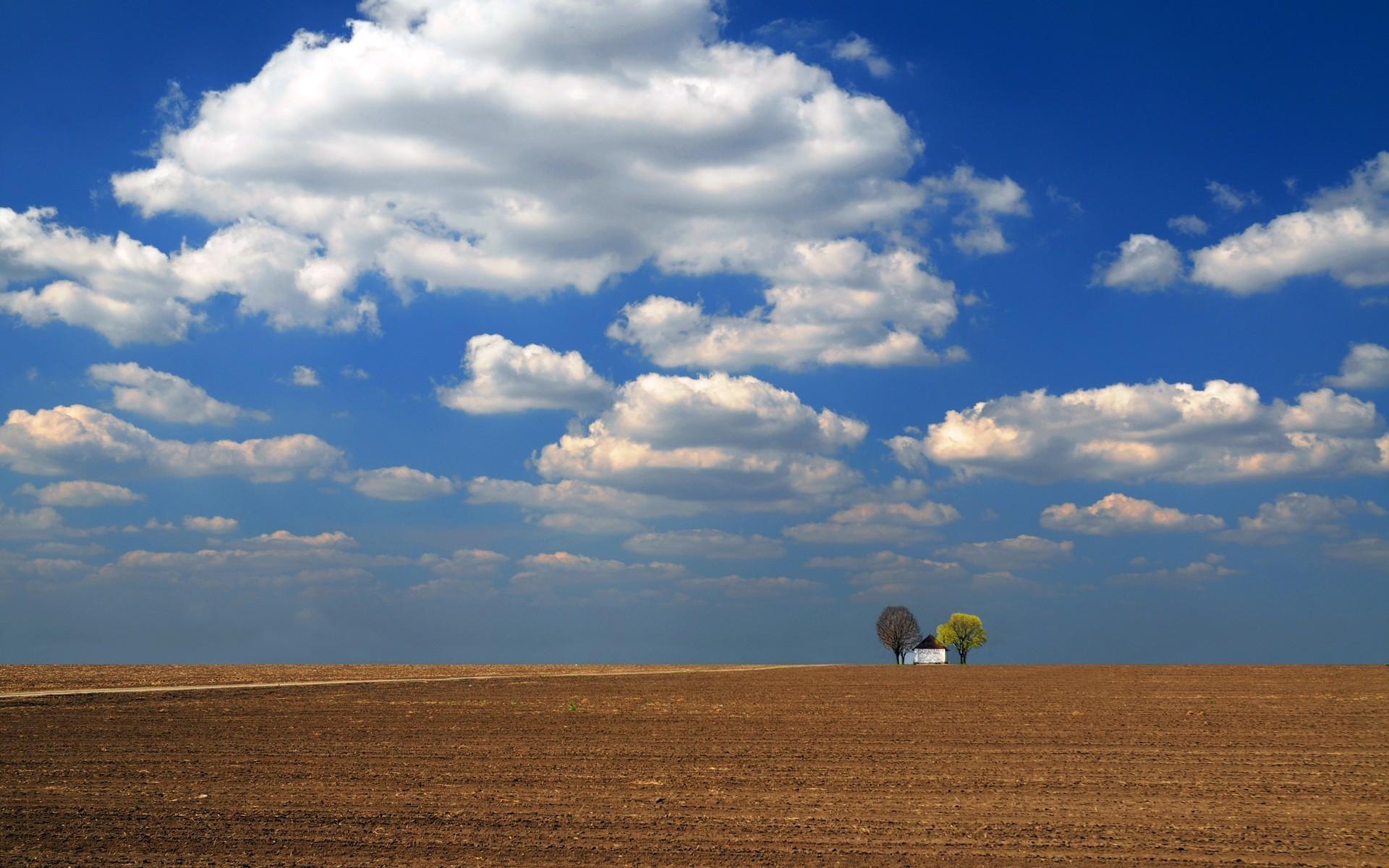 Wallpaper Lonely building among the plowed field