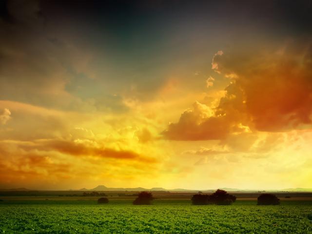 Wallpaper Orange sky over the green field