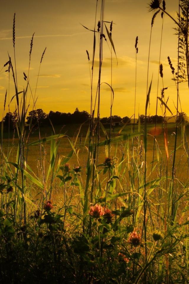 Wallpaper Grass field at sunset