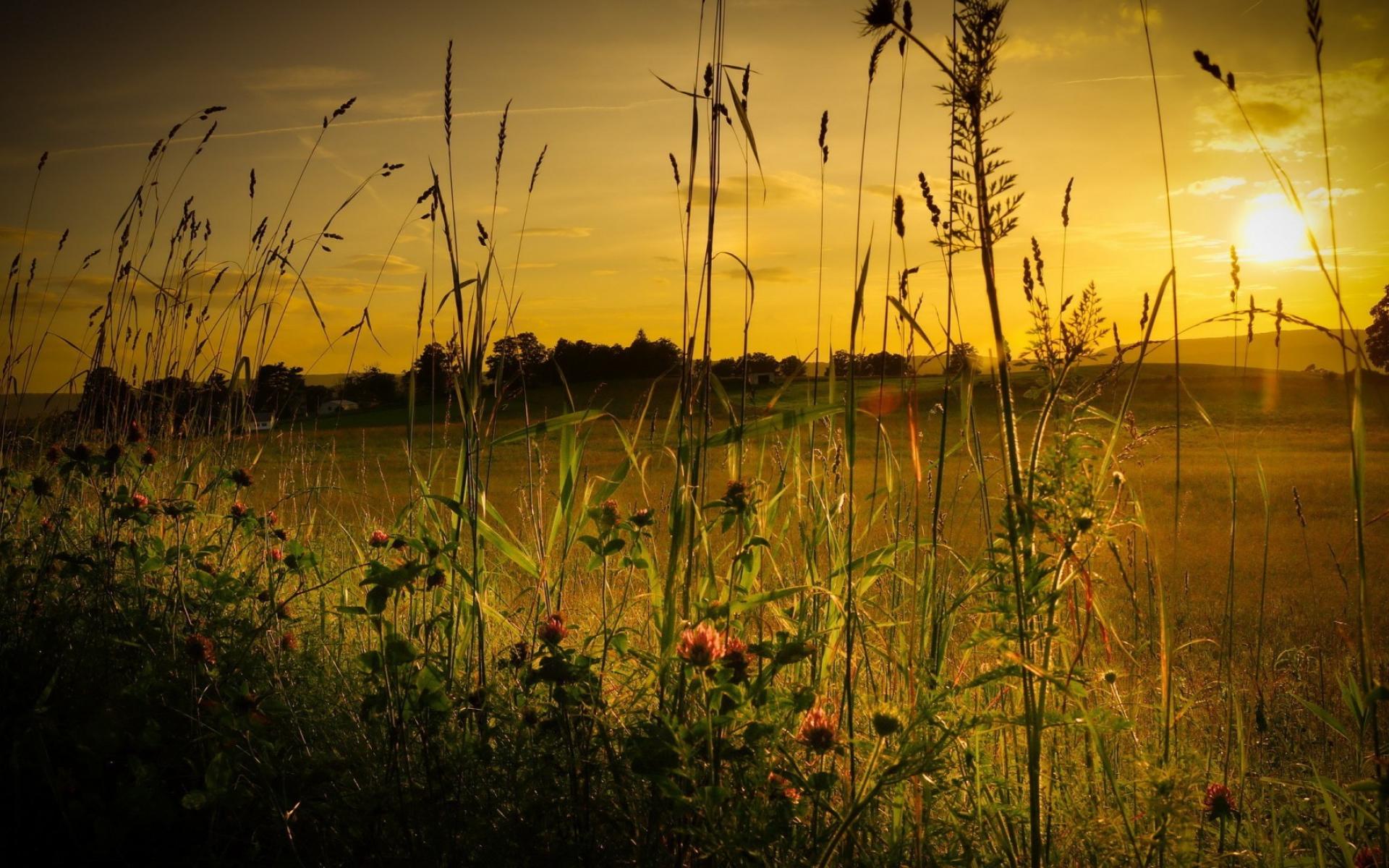 Wallpaper Grass field at sunset