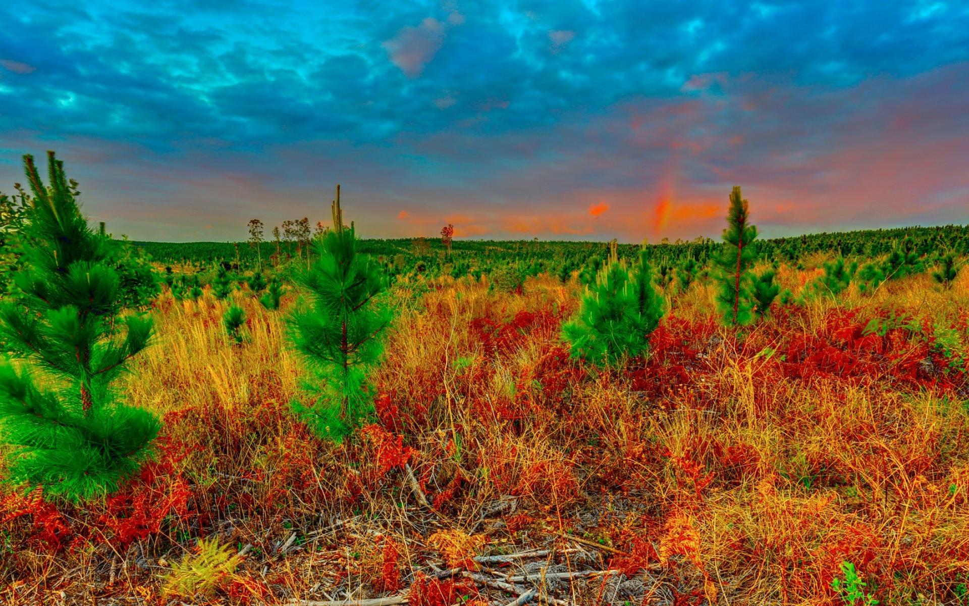 Wallpaper Young spruce in the field
