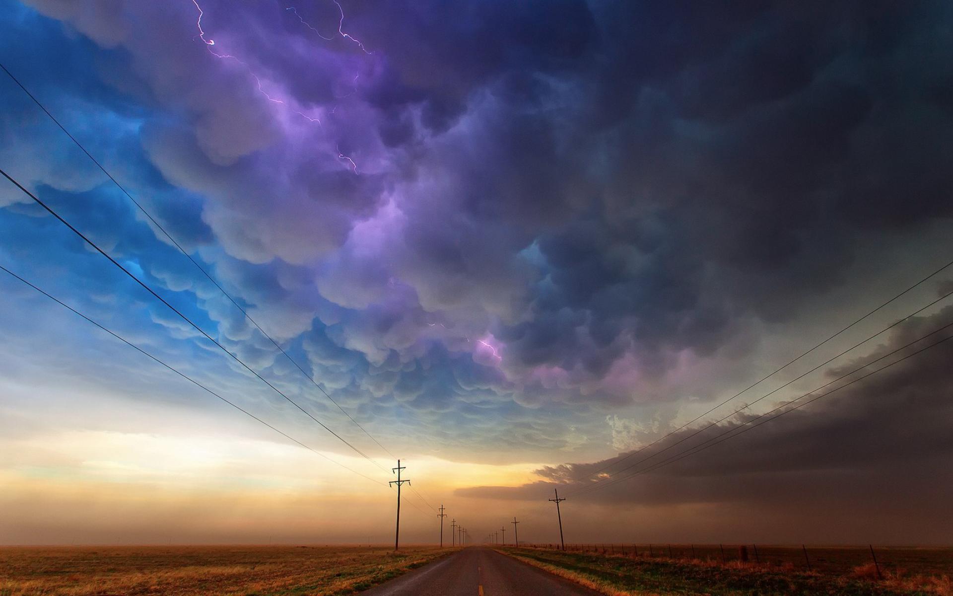 Wallpaper Severe thunderstorm over fields