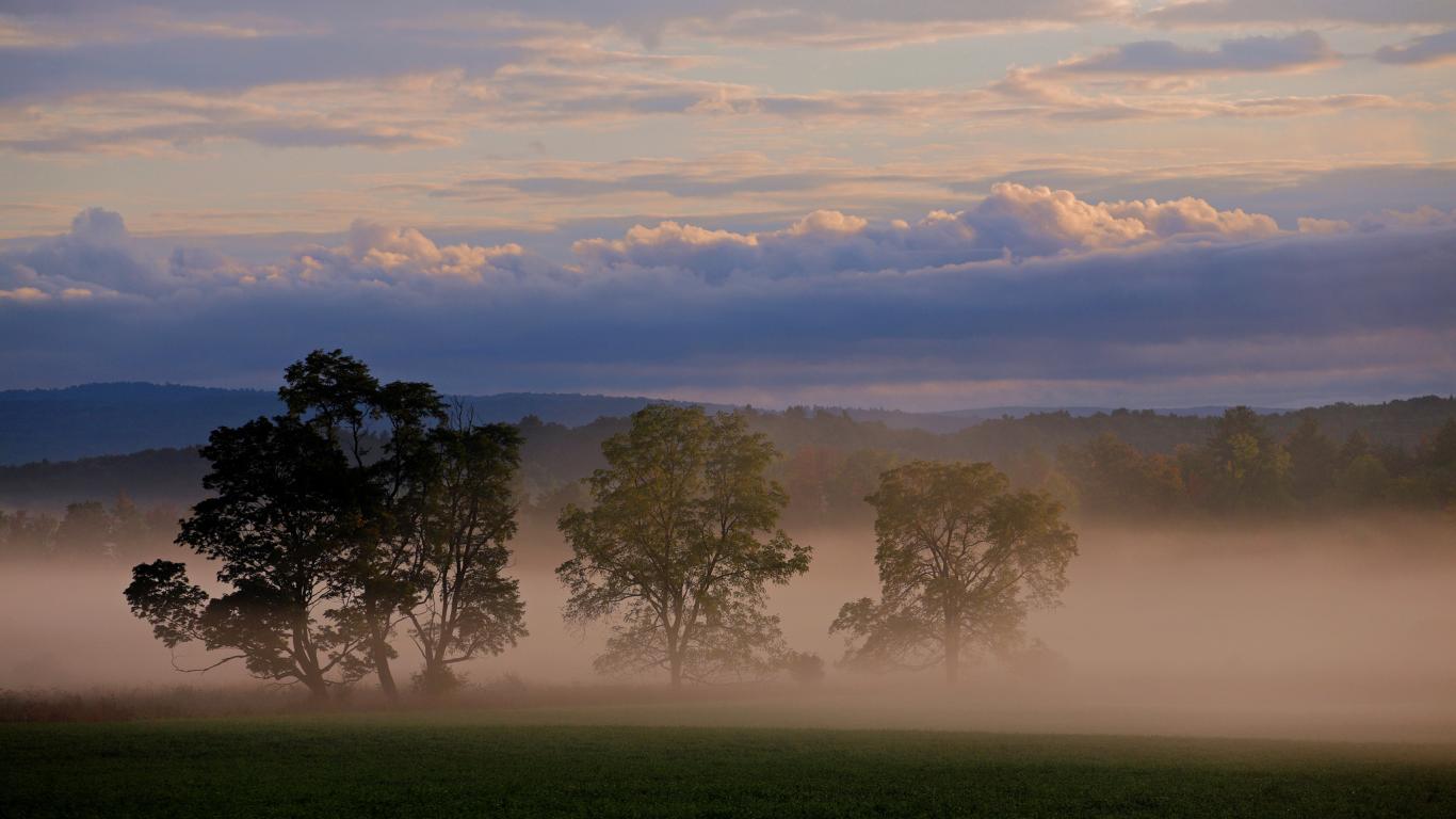 Wallpaper Three trees in the fog