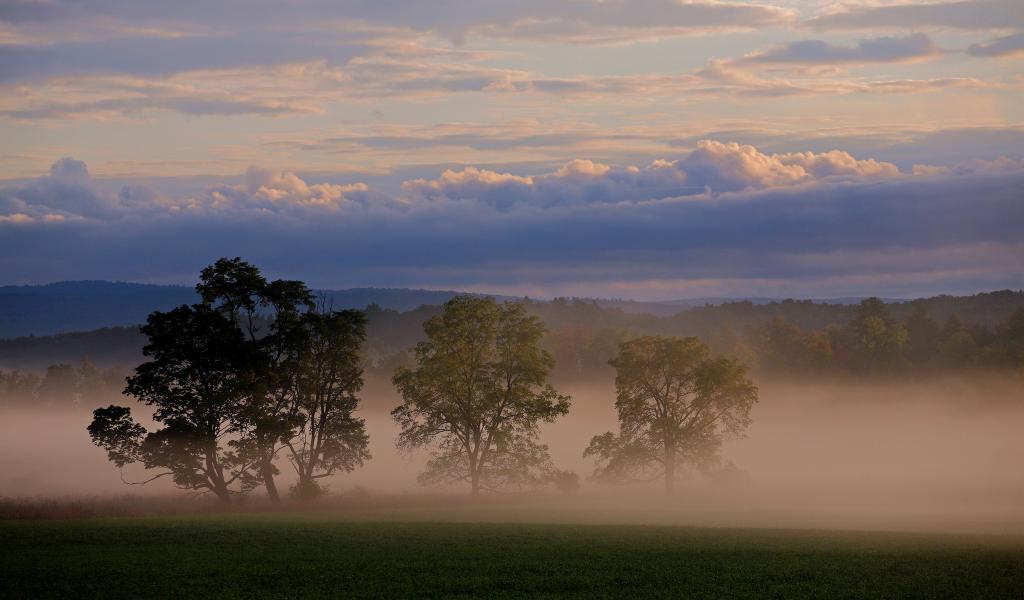 Wallpaper Three trees in the fog